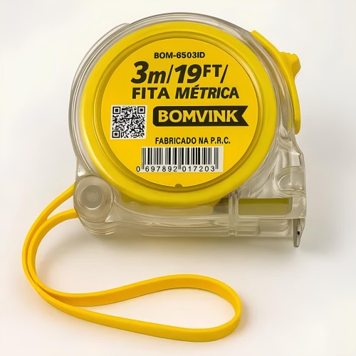 A Trena de 3 metros x 19mm é ideal para profissionais e uso doméstico. Possui fita resistente e marcação de fácil leitura, garantindo precisão em cada medição.