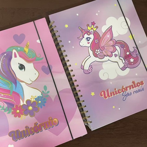 CADERNO ESPIRAL 80 FOLHAS CAPA DURA DESENHO UNICÓRNIO FOLHA A4