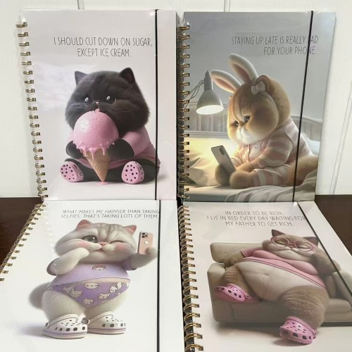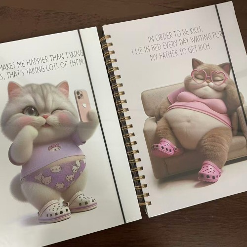 CADERNO ESPIRAL 80 FOLHAS CAPA DURA DESENHO GATO FOFO FOLHA A4