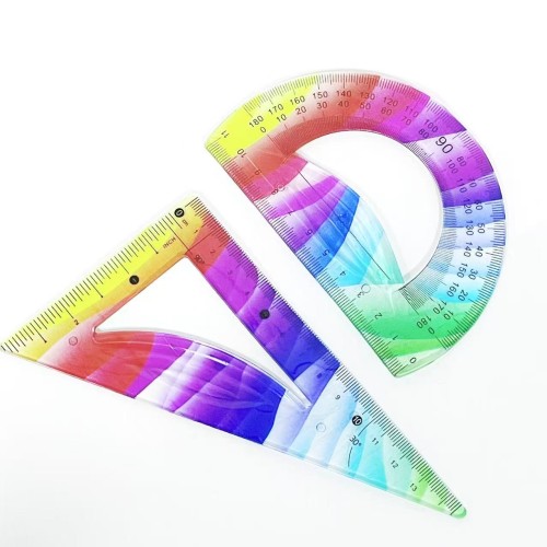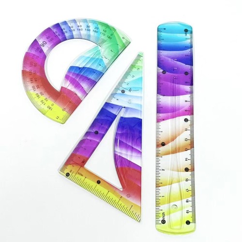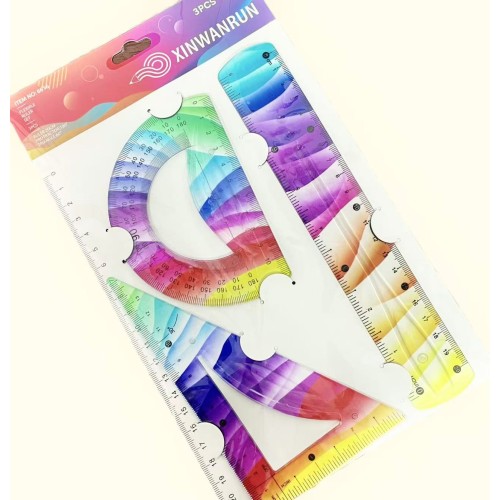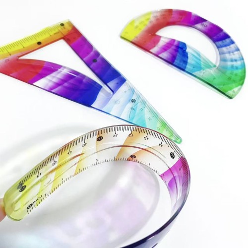 Kit Escolar com Régua, Esquadro e Transferidor Flexível Colorido