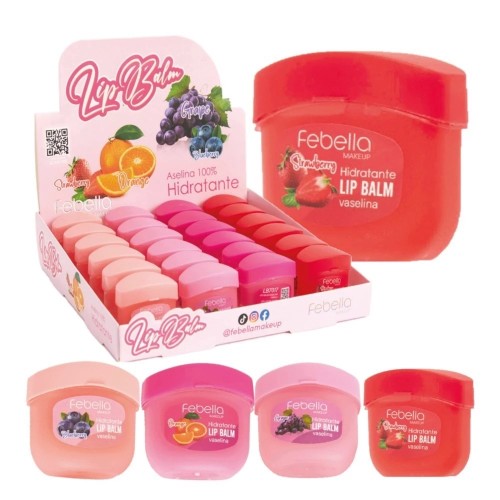 LIp Balm com ação hidratante, aroma deliciosos de frutas, e embalagem fofa de potinho. Esse é o Lip Balm LB7017 da Febella.