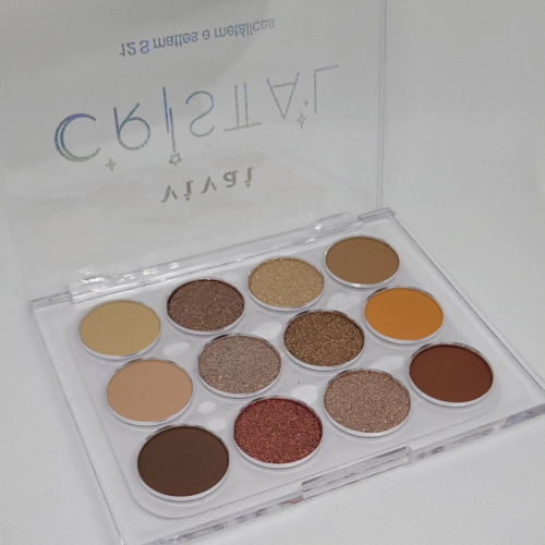 A Paleta de Sombras permite criar maquiagens mais elaboradas e até as mais simples para o dia a dia. Possui tons mais quentes que são mescladas entre sombras Matte, peroladas, metálicas e sombras 3D, contendo alta pigmentação, textura aveludada e ótima cobertura,
