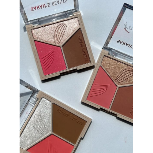 A Paleta Multifuncional 3 em 1 da Sarah’s Beauty é a solução multifuncional perfeita para a sua maquiagem. Com três cores essenciais, essa paleta versátil permite que você contorne, blush e ilumine o rosto com apenas um único produto. Suas cores super pigmentadas e de longa duração proporcionam um acabamento impecável, fácil de esfumar, e podem ser usadas também como sombra. Ideal para quem busca praticidade no dia a dia ou para uso profissional, essa paleta é sua aliada na criação de looks completos e harmoniosos, simplificando sua rotina de beleza.