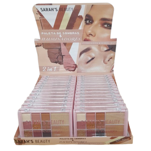 Paleta de Sombras e Iluminadores BOX C/24 Unidades Sarah's Beauty S6411A S6411B