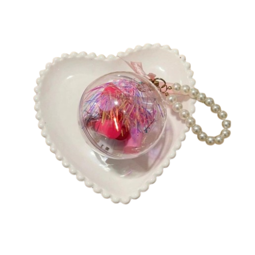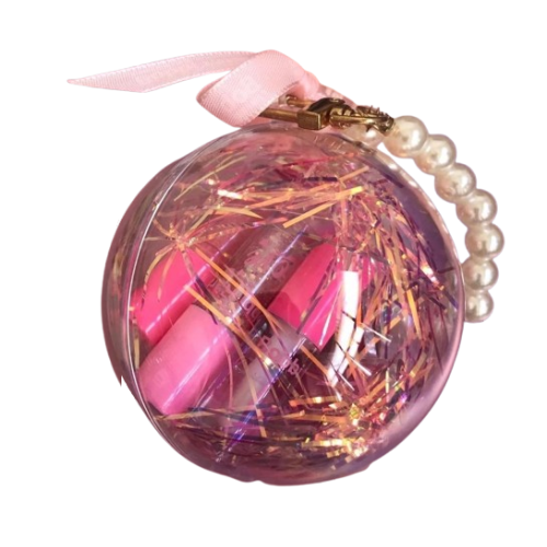 Bola Case brilhante com 6 lip gloss e pulseira de pérolas.
