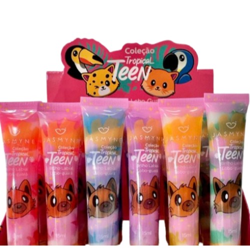 O brilho labial da coleção Tropical Teen da Jasmyne, Lobo Guará, não adiciona cor aos lábios. Oferece um brilho sutil e contem aroma agradável, hidratantes. Produto é ideal para quem busca um visual natural ou para complementar um batom já aplicado.