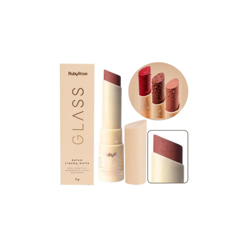 Eleve sua beleza a um novo patamar com o Batom Creamy Matte da linha Glass da Ruby Rose e desfrute de lábios deslumbrantes e cheios de vida.