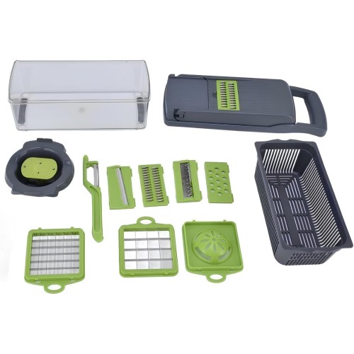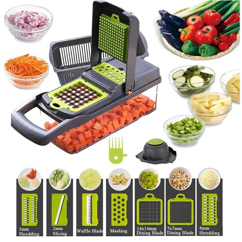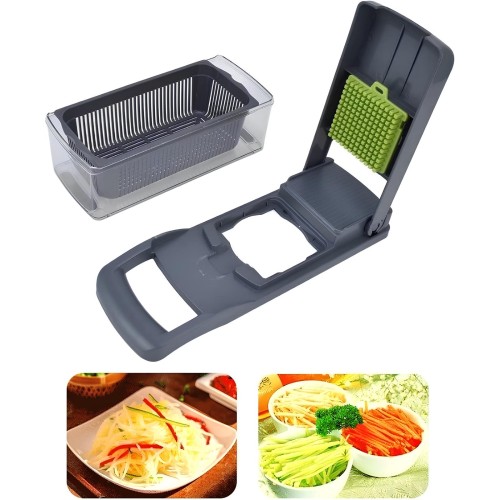 Versatilidade Superior: Com lâminas afiadas de aço inoxidável, nosso cortador oferece a versatilidade necessária para cortar uma ampla gama de vegetais facilmente, proporcionando fatias uniformes e consistentes.