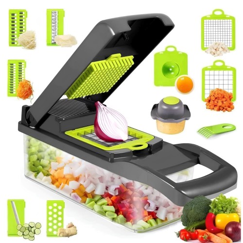 Design Ergonômico: ️ O design ergonômico do nosso cortador proporciona uma experiência de uso confortável, permitindo cortar seus vegetais com eficiência e sem esforço desnecessário.