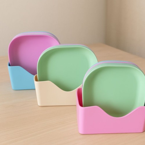Deixe a hora das refeições mais divertida e organizada com este lindo kit de pratos coloridos! Ideal para uso infantil ou ambientes descontraídos, o conjunto acompanha 10 pratos com cantos arredondados e acabamento fosco, acomodados em um suporte moderno que facilita o armazenamento. Perfeito para lanches, refeições leves, piqueniques e até mesmo decoração.