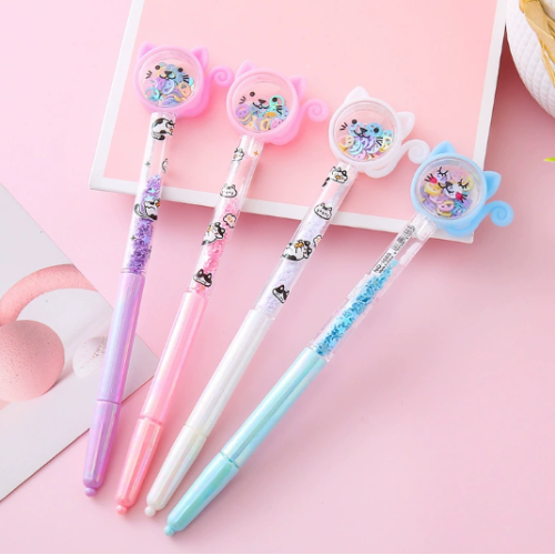 CANETA DE GATO FOFO PURPURINA MODELO SORTIDO
