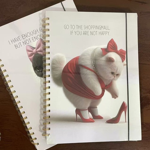 CADERNO ESPIRAL 80 FOLHAS CAPA DURA DESENHO GATO ELEGANTE FOLHA A4