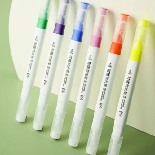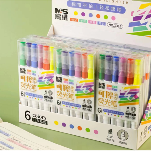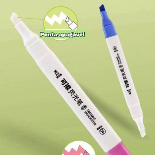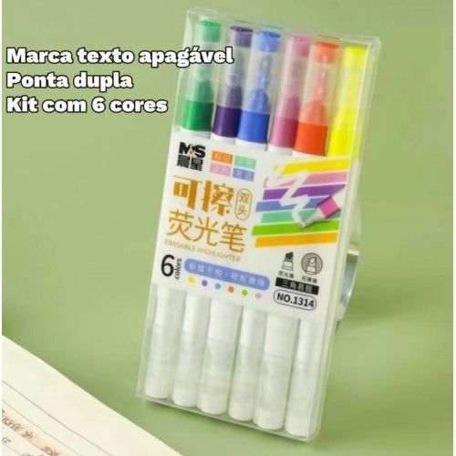 MARCA TEXTO APAGÁVEL PONTA DUPLA 6 CORES VIBRANTES ILUMINADOR MÁGICO