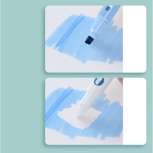Uma das pontas é chanfrada usada para destacar o texto, a outra ponta também chanfrada é usada para apagar.