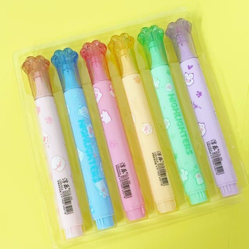 MARCA TEXTO 6 CORES PATINHA GATO CORPO COLORIDO