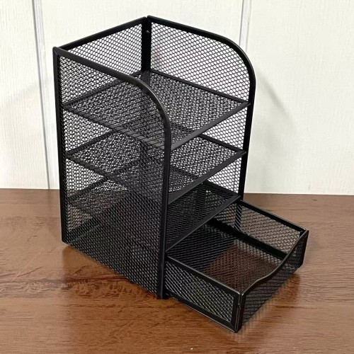 É uma peça elegante e funcional que oferece uma solução organizada para armazenar. Feito de metal resistente, este suporte possui um acabamento que adiciona um toque sofisticado ao seu espaço de trabalho, escritório ou ambiente doméstico.
