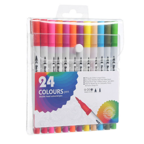 Caneta Ponta Dupla 24 Cores Canetinha Brush Pen Corpo Branco