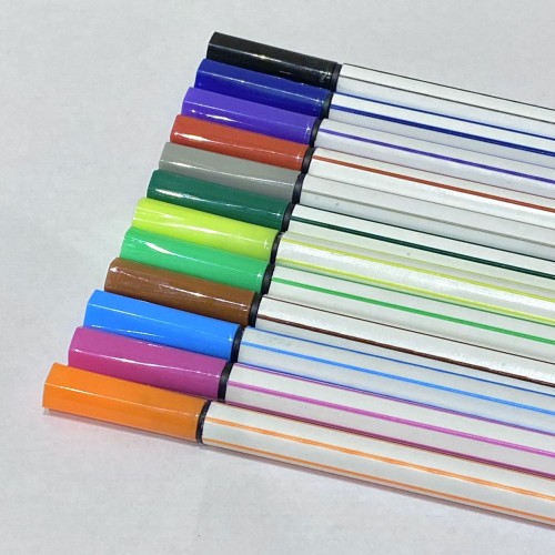 CANETINHA 12 CORES HIDROGRÁFICA LAVAVEL CORPO BRANCO LISTRADA