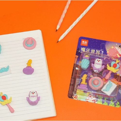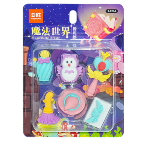 BORRACHA CARTELA KIT 6 PÇS MUNDO MÁGICO