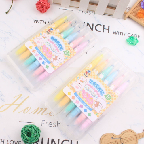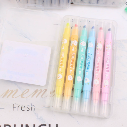 MARCA TEXTO APAGÁVEL PONTA DUPLA KIT COM 6 CORES MARCADOR MAGIC