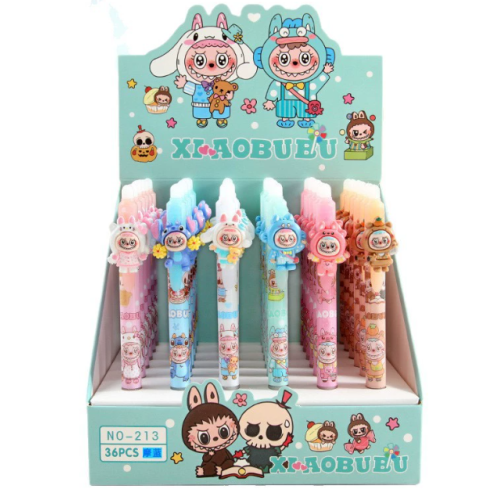 Caneta esferográfica retrátil e leve com o tema de labubu