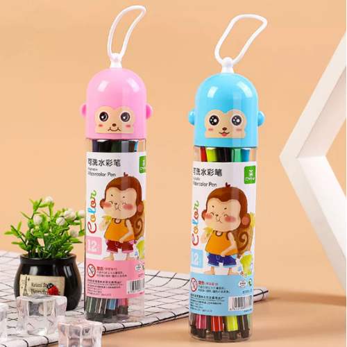 CANETINHA HIDROCOR 12 CORES TEMA MACACO