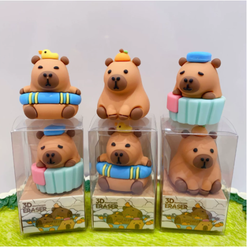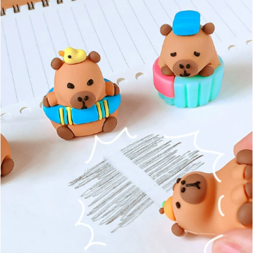 Transforme seus estudos em pura diversão com essas borrachas em forma de capivara!