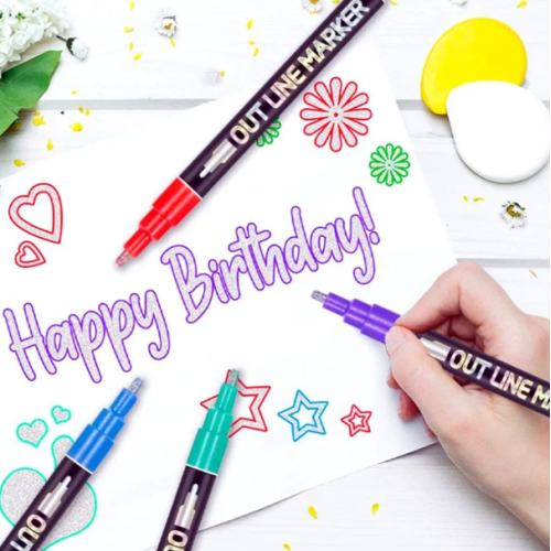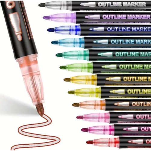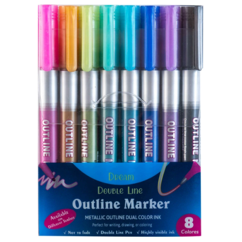 Kit Com 8 Canetas Contorno Outline Marker Metálica Linha Dupla Caneta para Álbum Scrapbook