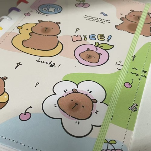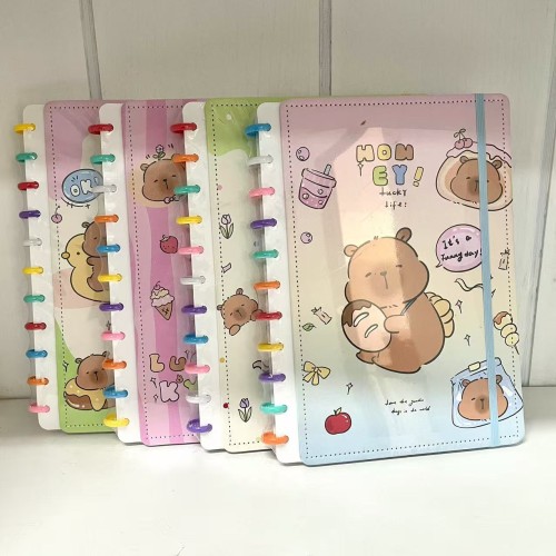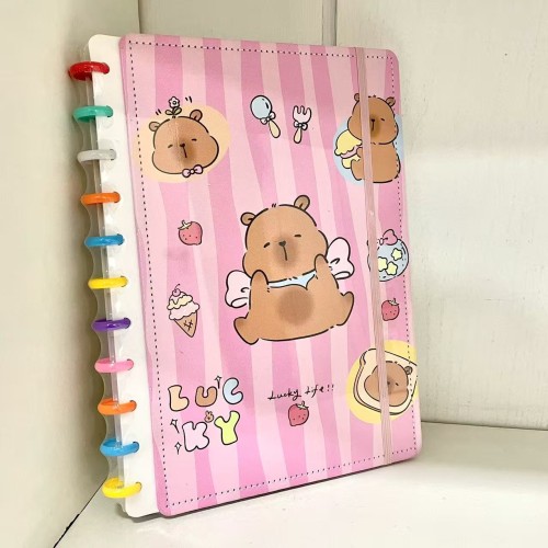 Caderno Inteligente 11 Discos com estampa de capivaras fofas! Perfeito para organizar suas anotações de forma prática e super fofa.