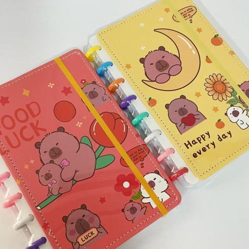 Caderno tipo Inteligente de disco, tamanho A5, PEQUENO 80 folhas, com estampa decorada de CAPIVARA.