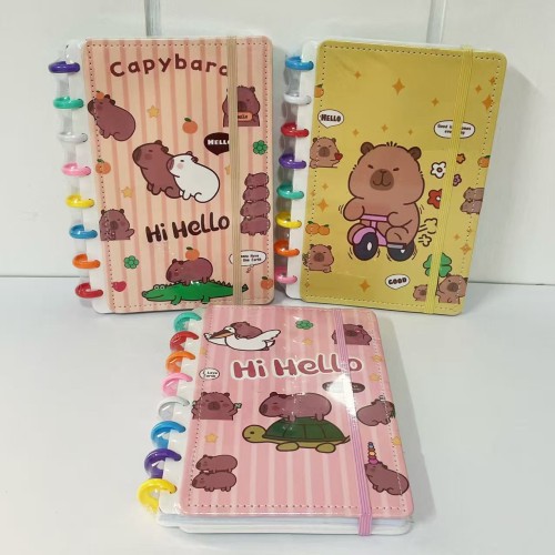 Caderno tipo Inteligente de disco, tamanho A5, PEQUENO 80 folhas, com estampa decorada de CAPIVARA.