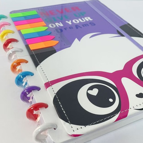 CADERNO INTELIGENTE 10 DISCOS CAPA PANDA COM POST IT