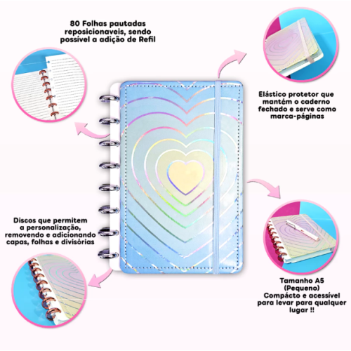 CADERNO INTELIGENTE 8 DISCOS TAMANHO A5 CORAÇÃO GRANDE