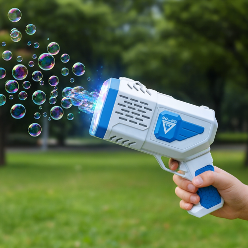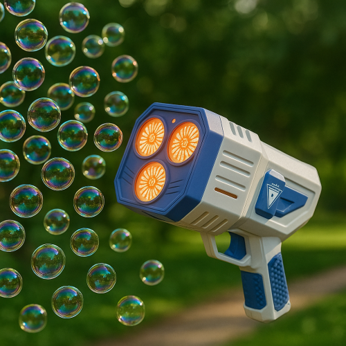 Transforme qualquer momento em pura diversão com a Pistola de Bolhas Elétrica 36 Furos! Um brinquedo moderno, seguro e super interativo, que vai encantar crianças e adultos.