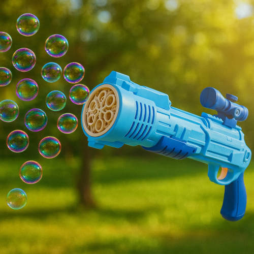 Transforme qualquer momento em pura magia com a Arma de Bolhas Dobrável Infantil! Produz centenas de bolhas em segundos, garantindo muita diversão para crianças e adultos. Ideal para festas, brincadeiras ao ar livre e até sessões de fotos criativas.