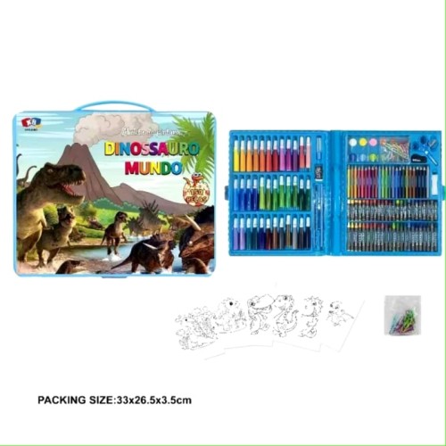 Kit pintura 150 peças Estojo Maleta Pintura Infantil Canetinhas Giz Lápis Cores e Tamanhos Variados + Desenhos Para Colorir Presente infantil Temos capa AZUL(dinossauro) e ROSA(Unicórnio) para escolher elevar