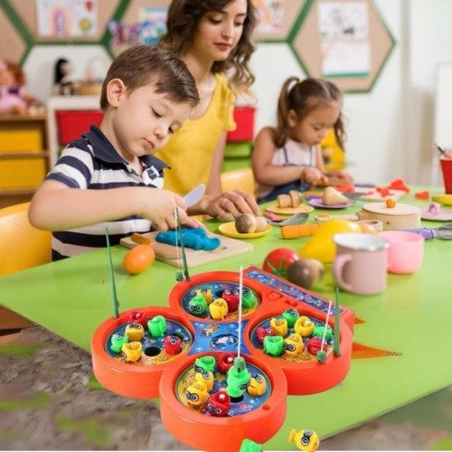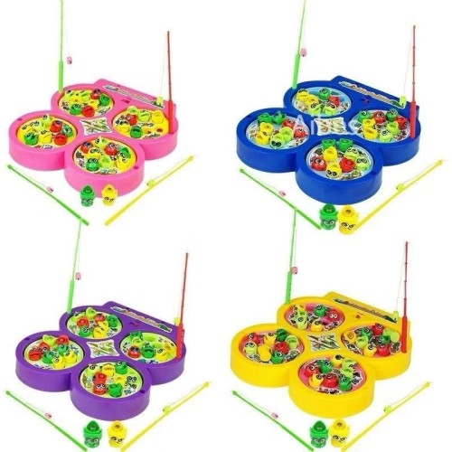 O pega peixe Fishing vem com 32 peixes e 4 varinhas com imã na ponta. Os quatro tanques rodam, com peixinhos. As crianças vão adorar!!!