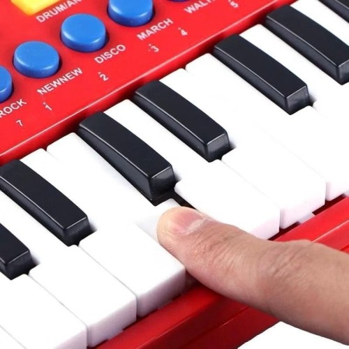 Permita que seus filhos explorem os diferentes sons desse divertido teclado infantil educativo. Estimula o desenvolvimento dos pequenos bem como sua capacidade de cognição, por meio da memória auditiva, combinação e criação de incríveis melodias. Seu filho aprende brincando, estimulando-o ao dom da música e sonoridade. O teclado possui opções de sons de 8 instrumentos musicais, 4 sons de tambores e 8 ritmos para você tocar junto! Você pode gravar e ouvir as notas que tocar. A diversão está garantida!