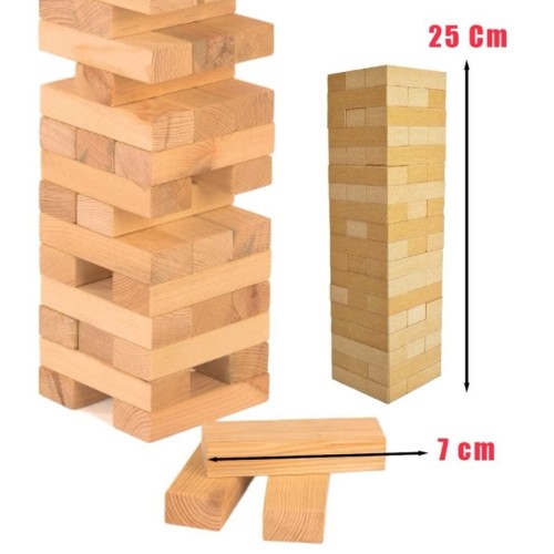 Para dar início ao jogo, uma torre com os blocos deverá ser montada, cada jogador retira um bloco de qualquer andar, vão empilhando por cima da torre de forma que ela crie novos andares e não perca o equilíbrio.