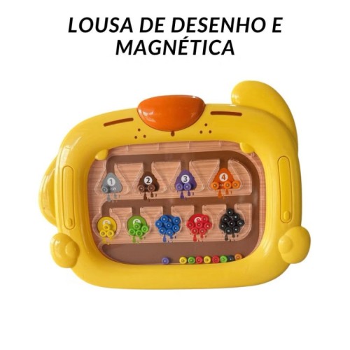 Mágica de Desenho e Magnética! Ideal para estimular a criatividade das crianças, esse brinquedo 2 em 1 oferece uma experiência completa: de um lado, uma lousa mágica para desenhar e apagar quantas vezes quiser, e do outro, um desafio magnético super educativo com bolinhas coloridas!