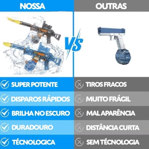 Essa pistola de água elétrica é um item indispensável para festas na piscina, dias de praia ou qualquer brincadeira ao ar livre.