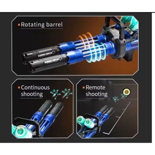 Equipado com dois reservatórios, este modelo automático elétrico garante uma ação contínua e dinâmica, mantendo a diversão por mais tempo. A alimentação por bateria oferece praticidade, eliminando a necessidade de pilhas, o que facilita o uso e a manutenção do produto.