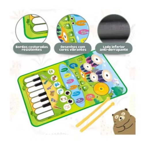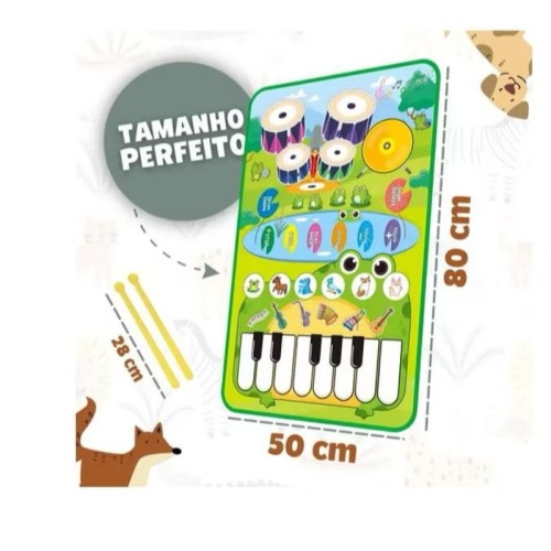 O teclado contém 13 teclas musicais; 6 sons instrumentais diferentes, 6 sons de animais e a bateria conta com mais 5 sons! É um brinquedo fácil de utilizar, dando a oportunidade de você criar as mais diversas melodias!