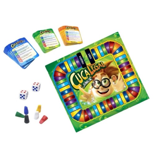 O jogo Cuca Legal Junior foi desenvolvido para desafiar você e seus amigos para uma emocionante disputa de conhecimentos. Para vencer você deverá responder questões sobre vários temas acertando as resposta você pode avançar as casas do tabuleiro até chegar ao final, mas se errar a resposta, deverá voltar o número de casas tiradas no dado e assim ficará mais distante da vitória.