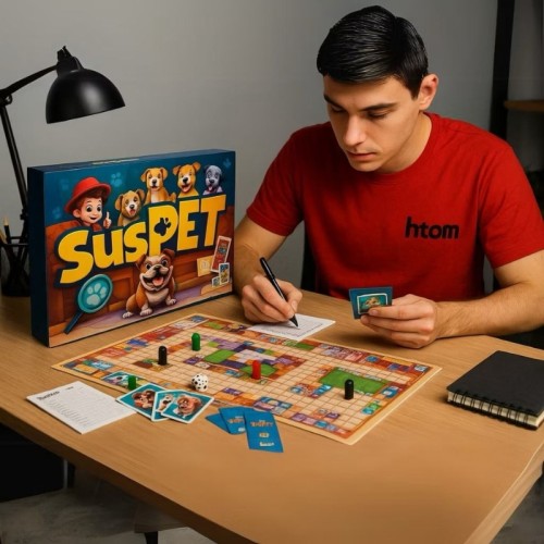 SusPET, o jogo de tabuleiro que vai transformar crianças e adultos em verdadeiros detetives! ??? Os pets são fofos, mas também muito travessos, e agora aprontaram uma confusão daquelas! É hora de juntar pistas, usar o raciocínio lógico e descobrir qual bichinho fez a travessura, qual foi a arte e em qual lugar da casa tudo aconteceu.