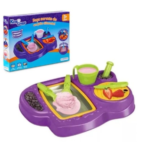 Faça sorvete de um jeito super diferente e delicioso com Kids Chef Sorvete na Chapa! Escolha o sabor de sua preferência, adicione granulados, frutas e doces e faça você mesmo a sua deliciosa sobremesa na chapa. Fácil de fazer e de limpar. Basta adicionar água e sal no reservatório da chapa, refrigerar por algumas horas e começar a brincadeira! Projetado e idealizado para crianças. Não necessita de pilhas! Imagens meramente ilustrativas