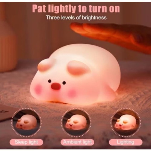 Toque na parte superior para ajustar o nível de brilho de fraco a médio a forte ou desligue-o Luz noturna e brinquedo em um: esta luminária de cabeceira não é apenas prática, mas também funciona como um brinquedo de entretenimento. Feito de silicone macio de qualidade alimentar de alta qualidade, é resistente à água, resistente a quedas e completamente seguro para o seu filho. Você pode espremer e amassar o quanto quiser, e ele sempre retornará à sua forma original Livre de BPA e seguro: nosso abajur de mesa é feito com silicone seguro para bebês e livre de BPA, garantindo a segurança do seu filho. O abajur macio de porco é fácil de transportar e resistente à quebra. A luz LED quente é anti-azul e suave para os olhos, eliminando qualquer cintilação ou desconforto Luz suave e relaxante: a fonte de luz de cor quente de 3000 k selecionada cria uma atmosfera calmante, tornando-a perfeita para uso à noite. A luz suave e quente promove uma sensação de relaxamento e pode ajudar a induzir sonolência, garantindo um sono tranquilo.