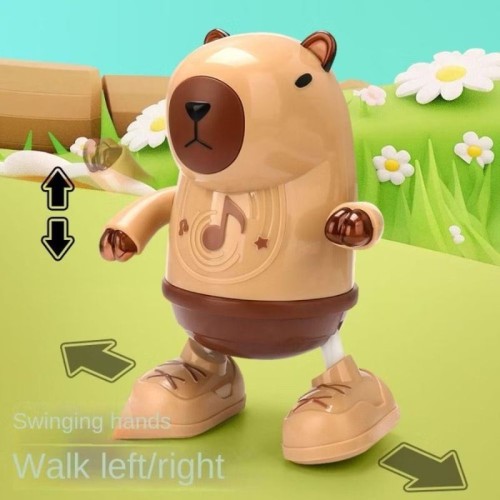 Com luzes vibrantes ele dança a divertida música da capivara.