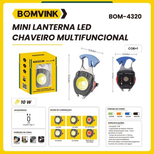 MINI LANTERNA LED CHAVEIRO MULTIFUNCIONAL BOM-4320