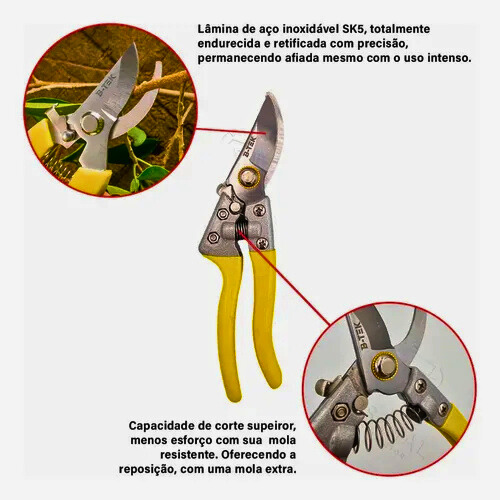 Uso Recomendado: Ideal para podas de galhos e caules leves em jardins, hortas e plantas ornamentais